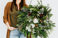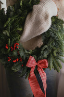 Make a fresh wreath of evergreens, berries, and ribbon.